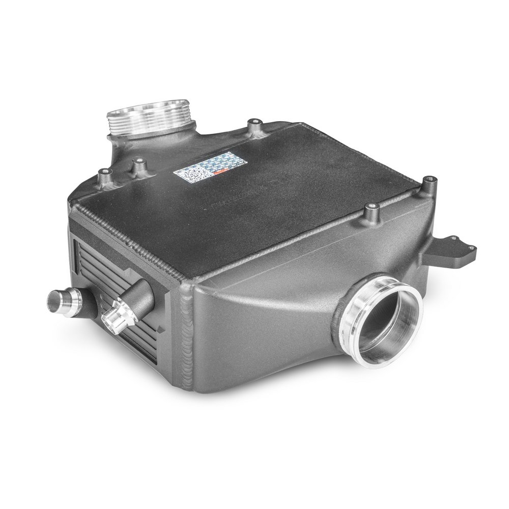 Der 3.0 Liter S55B30 Turbomotor der BMW M2 Competition / M3 / M4 Modelle ist mit einem indirekten Ladeluftkühlkreislauf ausgestattet. Der Kühlvorgang der Ladeluft wird demzufolge durch einen wassergekühlten Ladeluftkühler realisiert, welcher durch den WagnerTuning Hochleistungsladeluftkühler ersetzt wird.